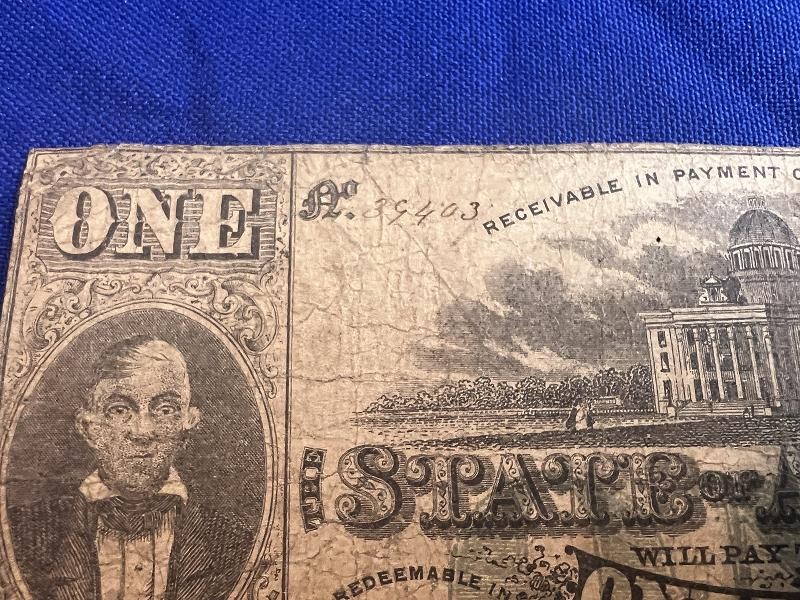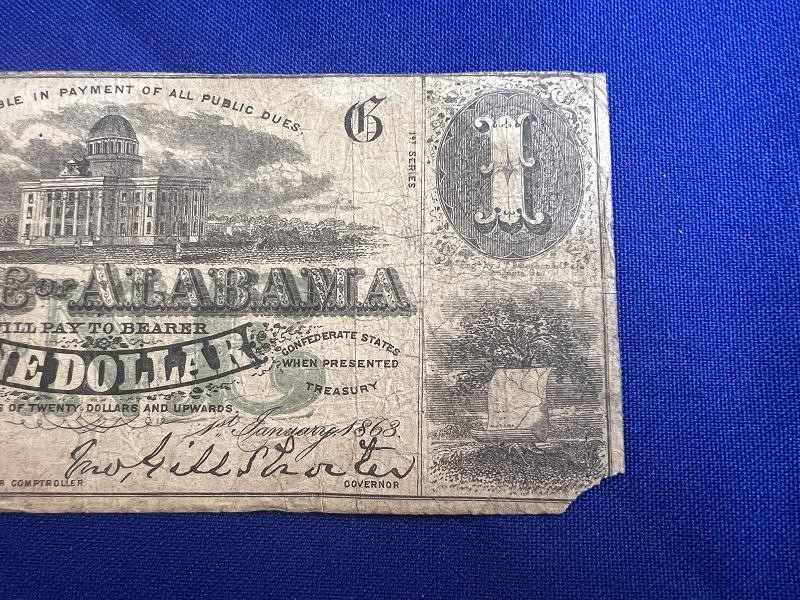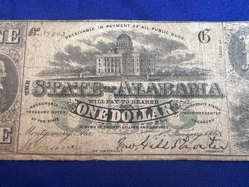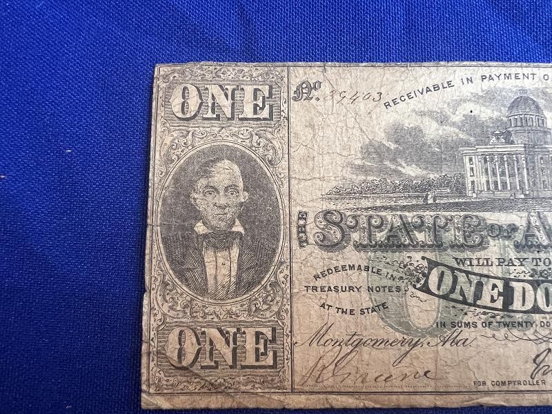 MONTGOMERY 1863 $1 DOLLAR BILL NOTE STATE OF ALABAMA OBSOLETE CURRENCY PAPER MONEY